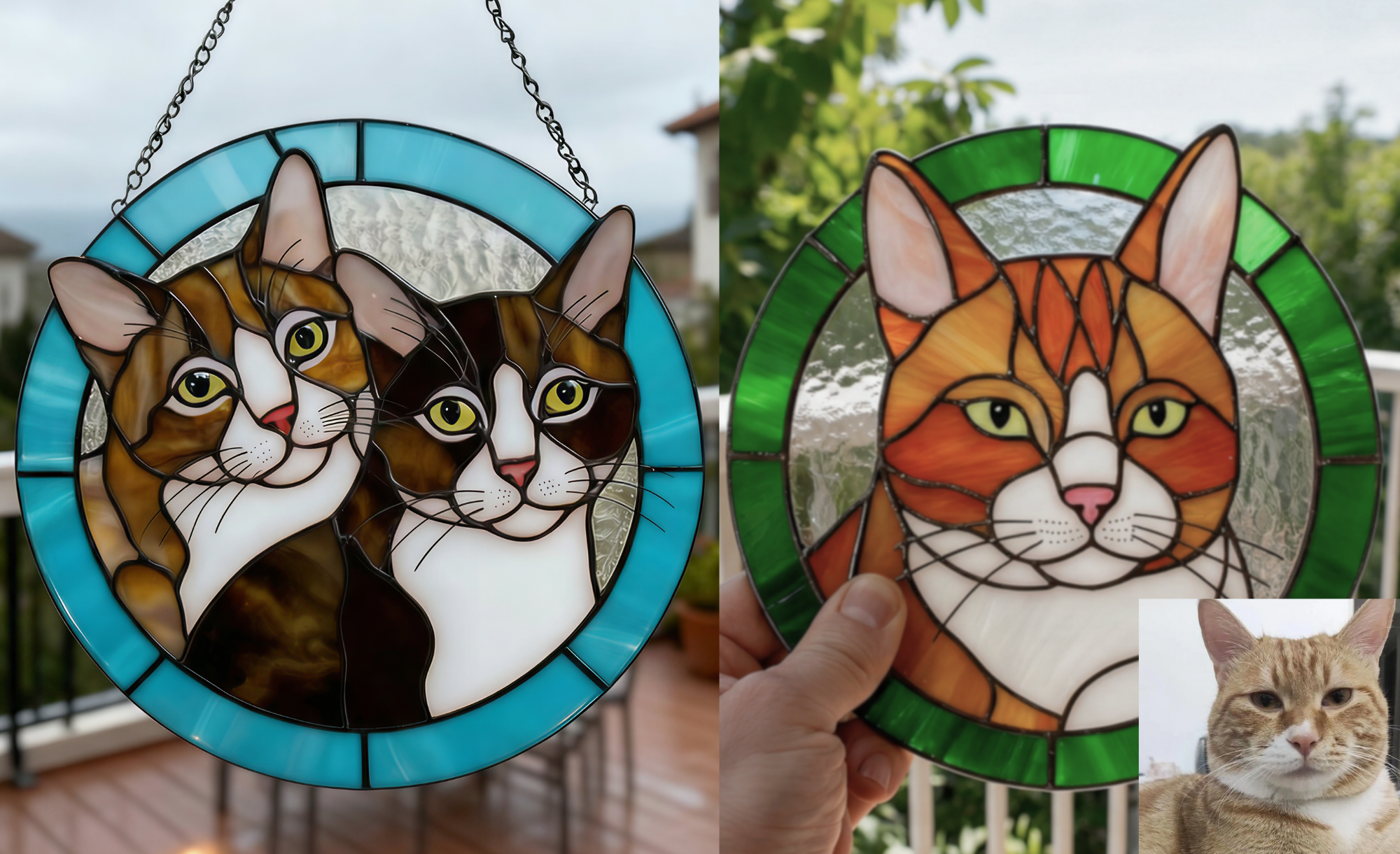 Cuddle&Shine Custom Handcrafted Pet Portrait Cat Suncatcher - Real Stained Glass Memorial Gift for Cat Lovers - Round Frame