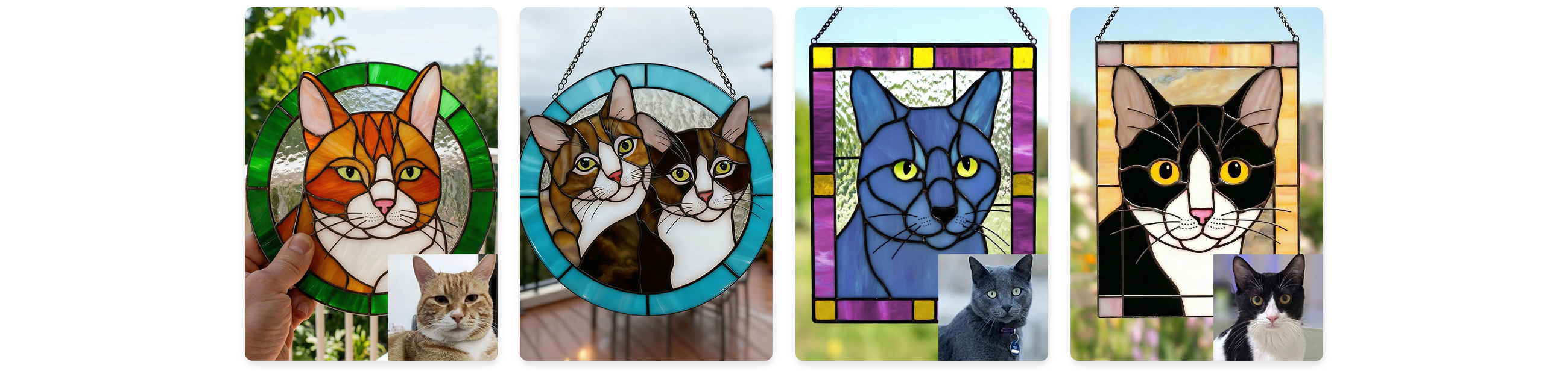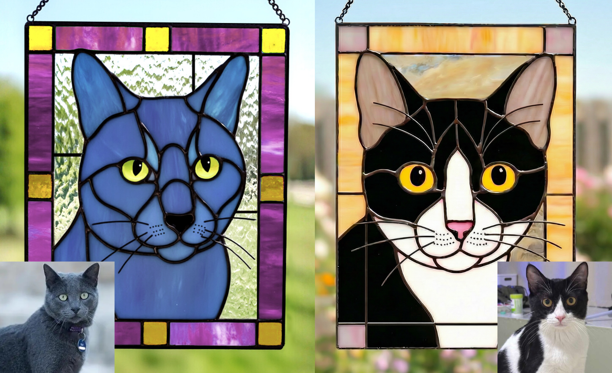 Cuddle&Shine Custom Handcrafted Pet Portrait Cat Suncatcher - Real Stained Glass Memorial Gift for Cat Lovers - Rectangle Frame