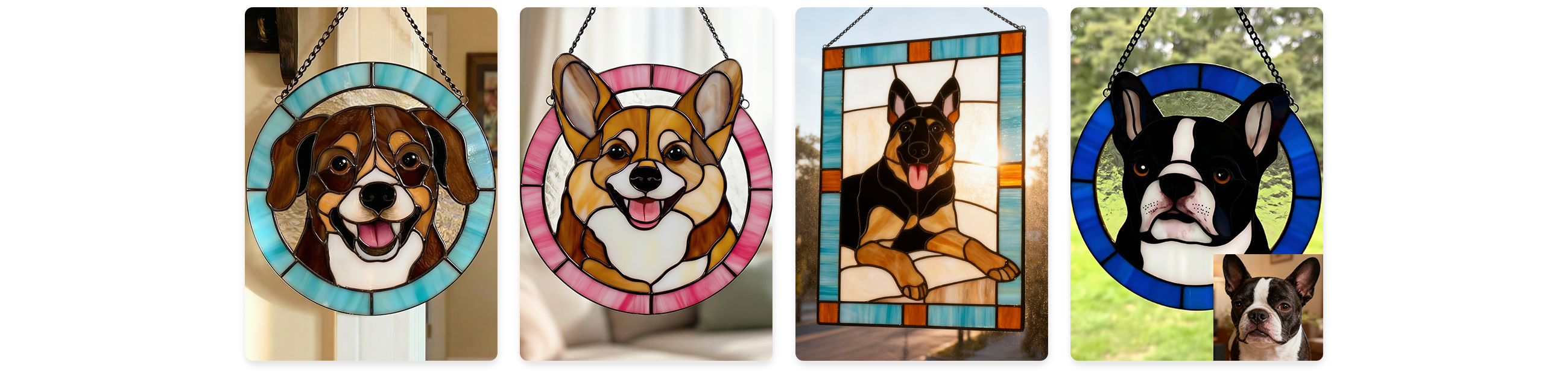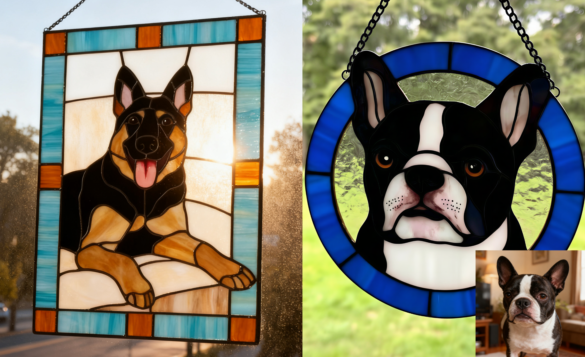 Cuddle&Shine Custom Handcrafted Pet Portrait Dog Suncatcher - Real Stained Glass Memorial Gift for Dog Lovers - Rectangle Frame