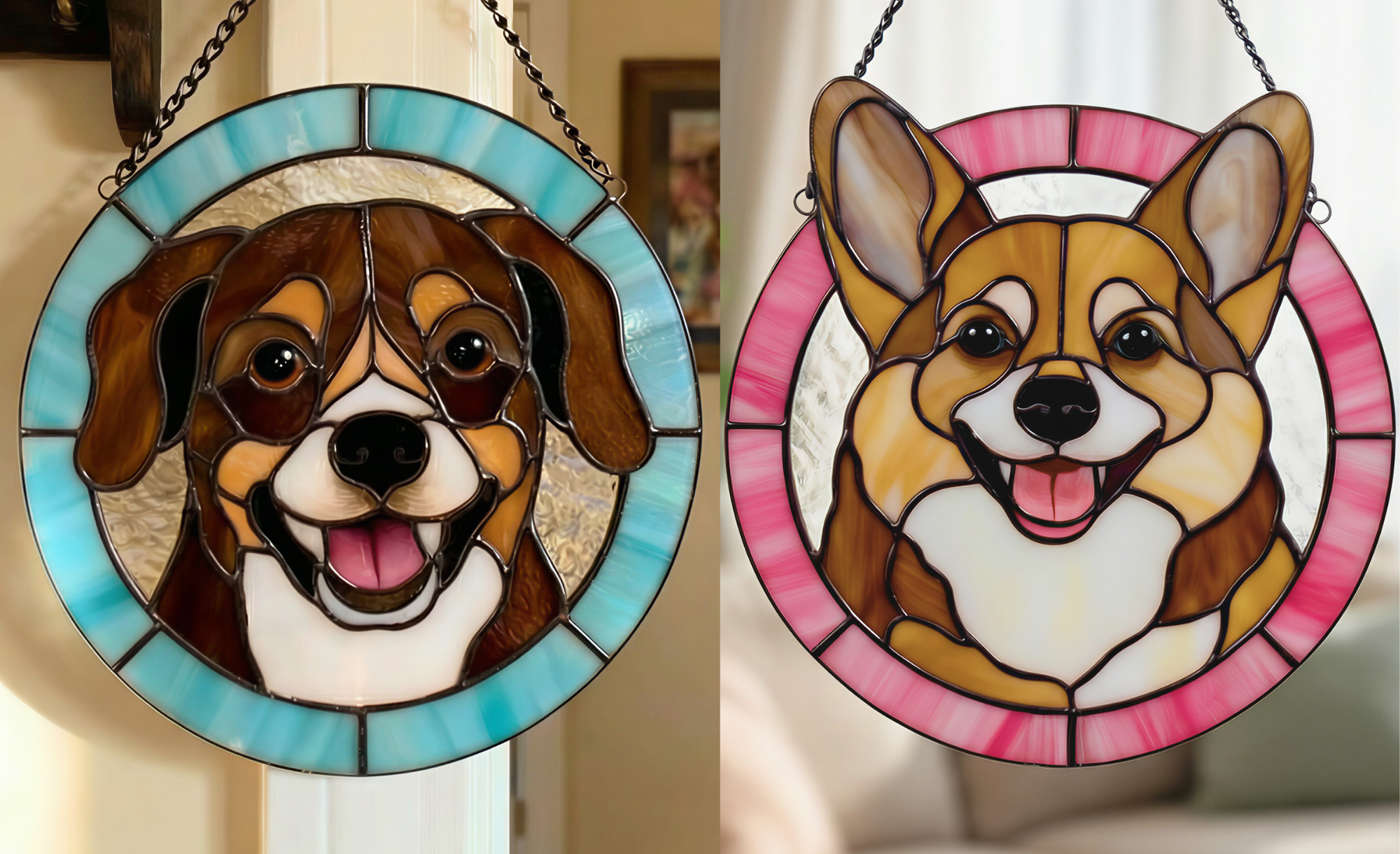 Cuddle&Shine Custom Handcrafted Pet Portrait Dog Suncatcher - Real Stained Glass Memorial Gift for Dog Lovers - Round Frame