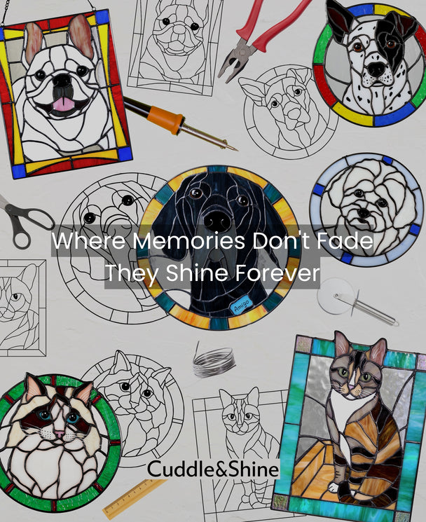 Cuddle&Shine Custom Handcrafted Pet Portrait Dog Suncatcher - Real Stained Glass Memorial Gift for Dog Lovers - Round Frame