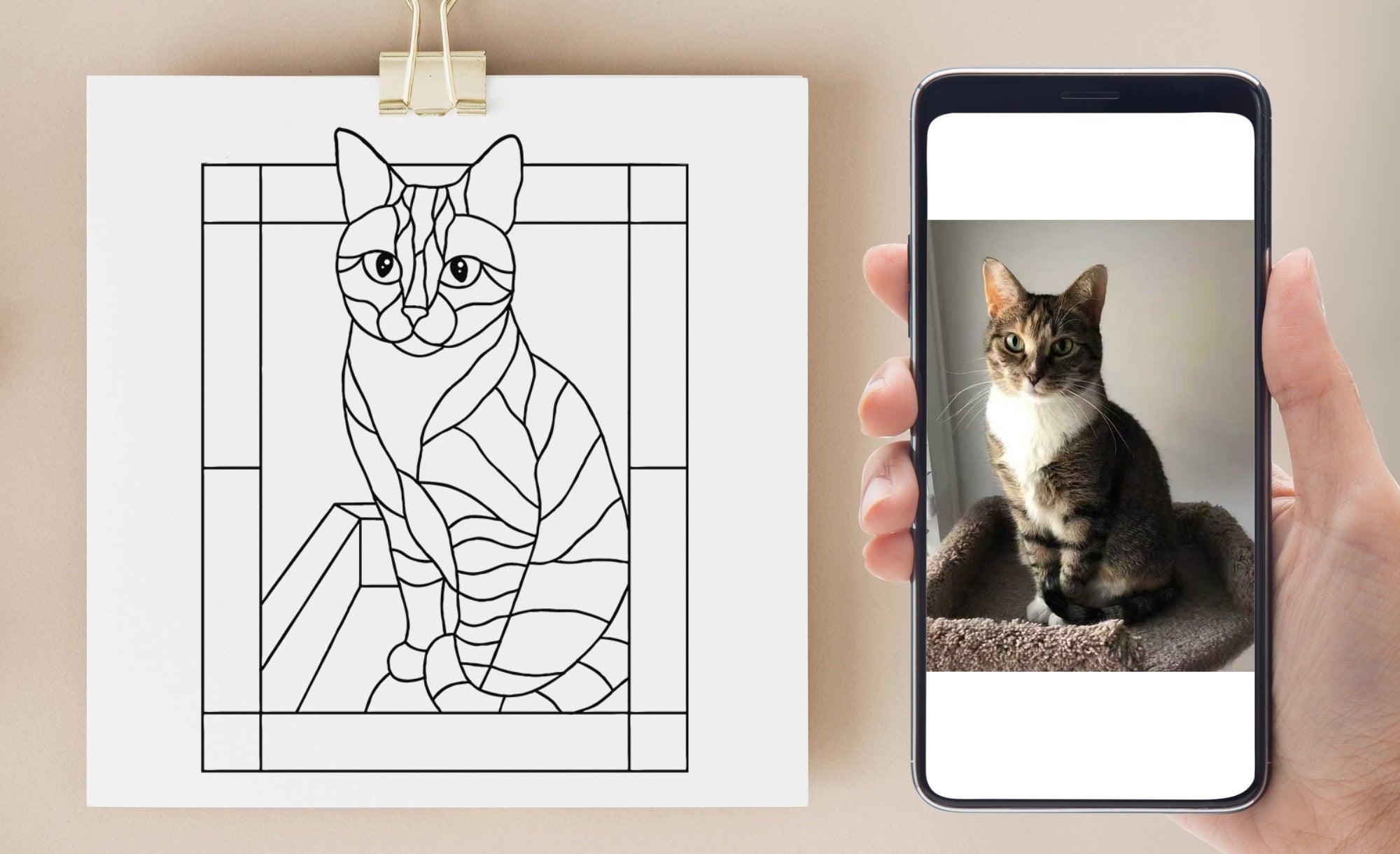 We transform your favorite photo into a custom stained glass portrait. Our artists meticulously capture your pet's unique features and spirit, creating a masterpiece that perfectly honors your companion.