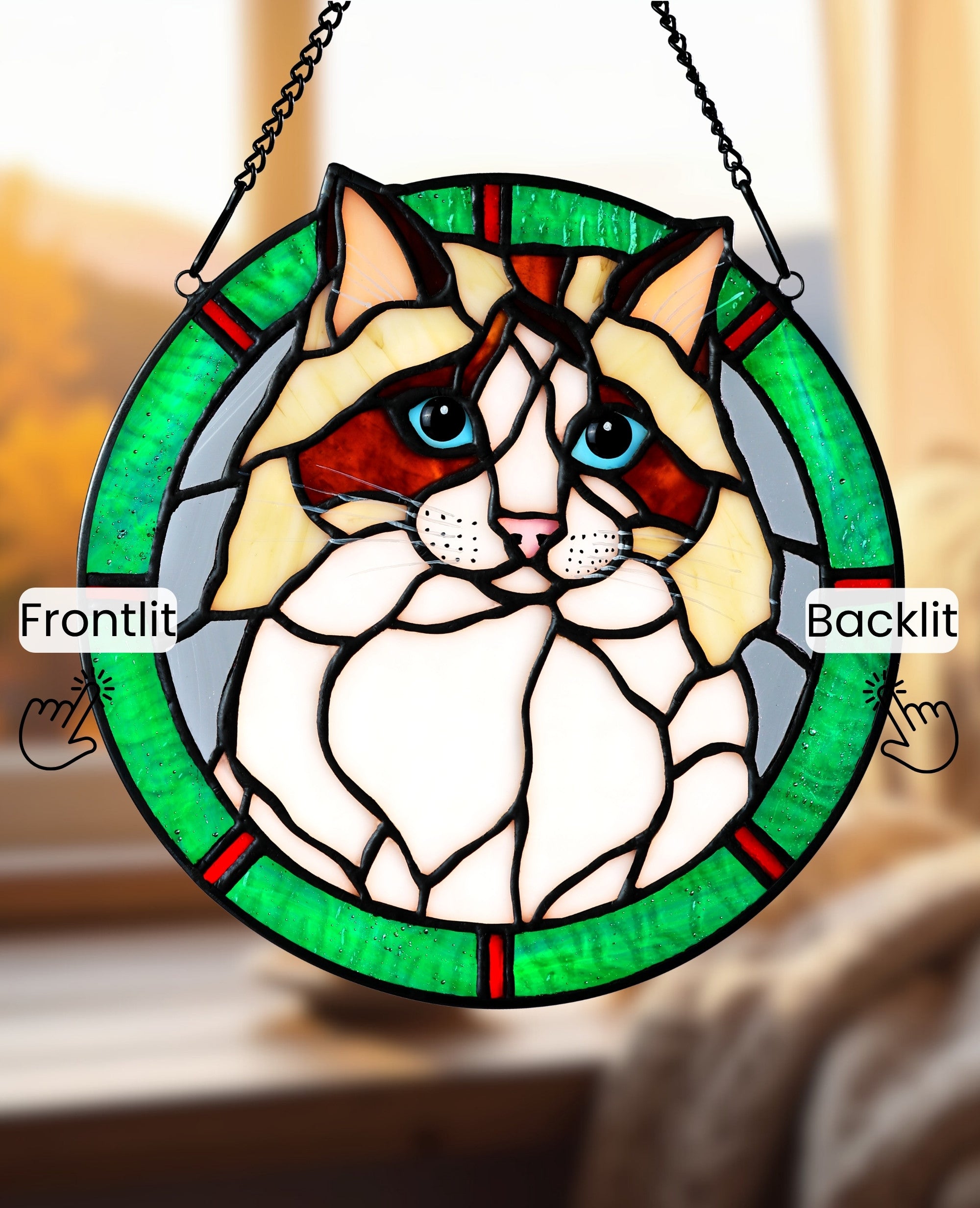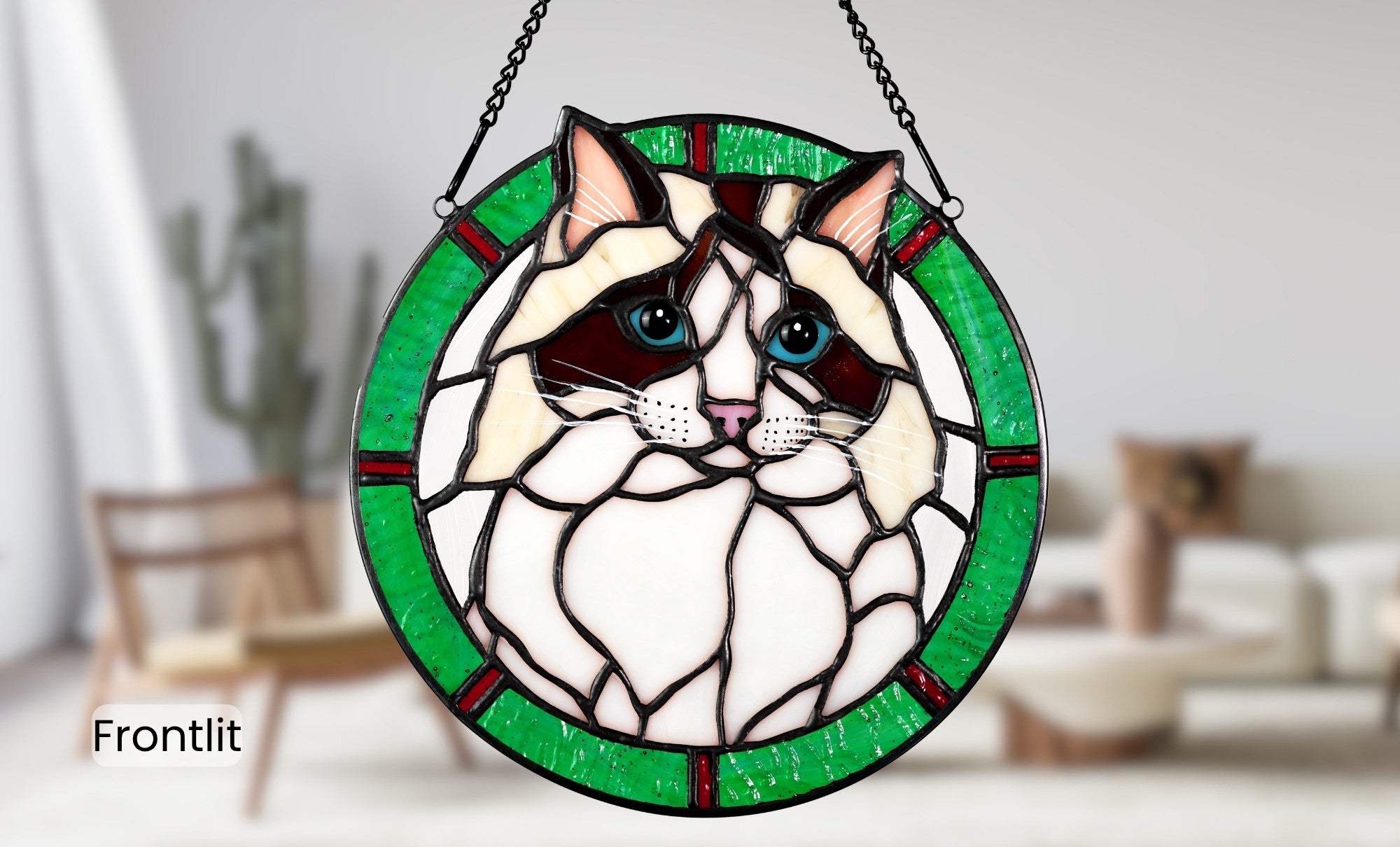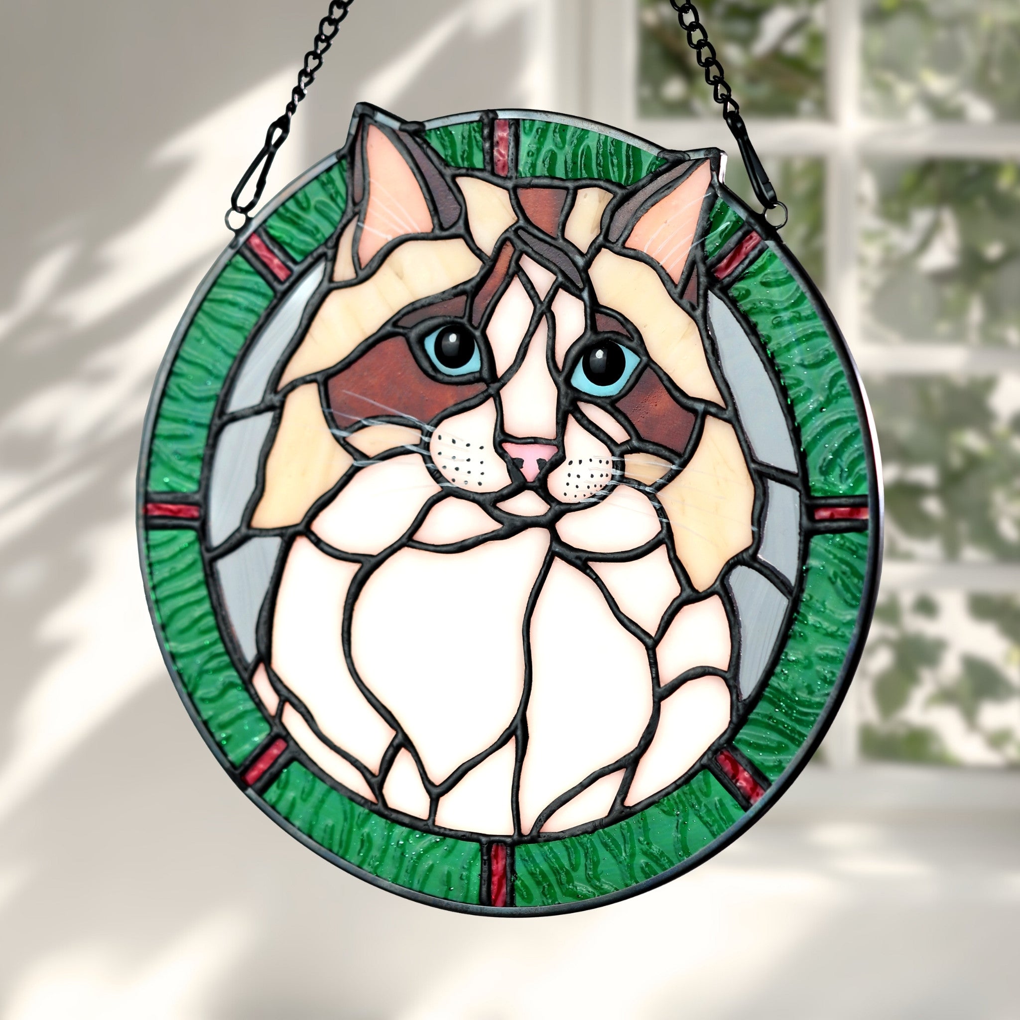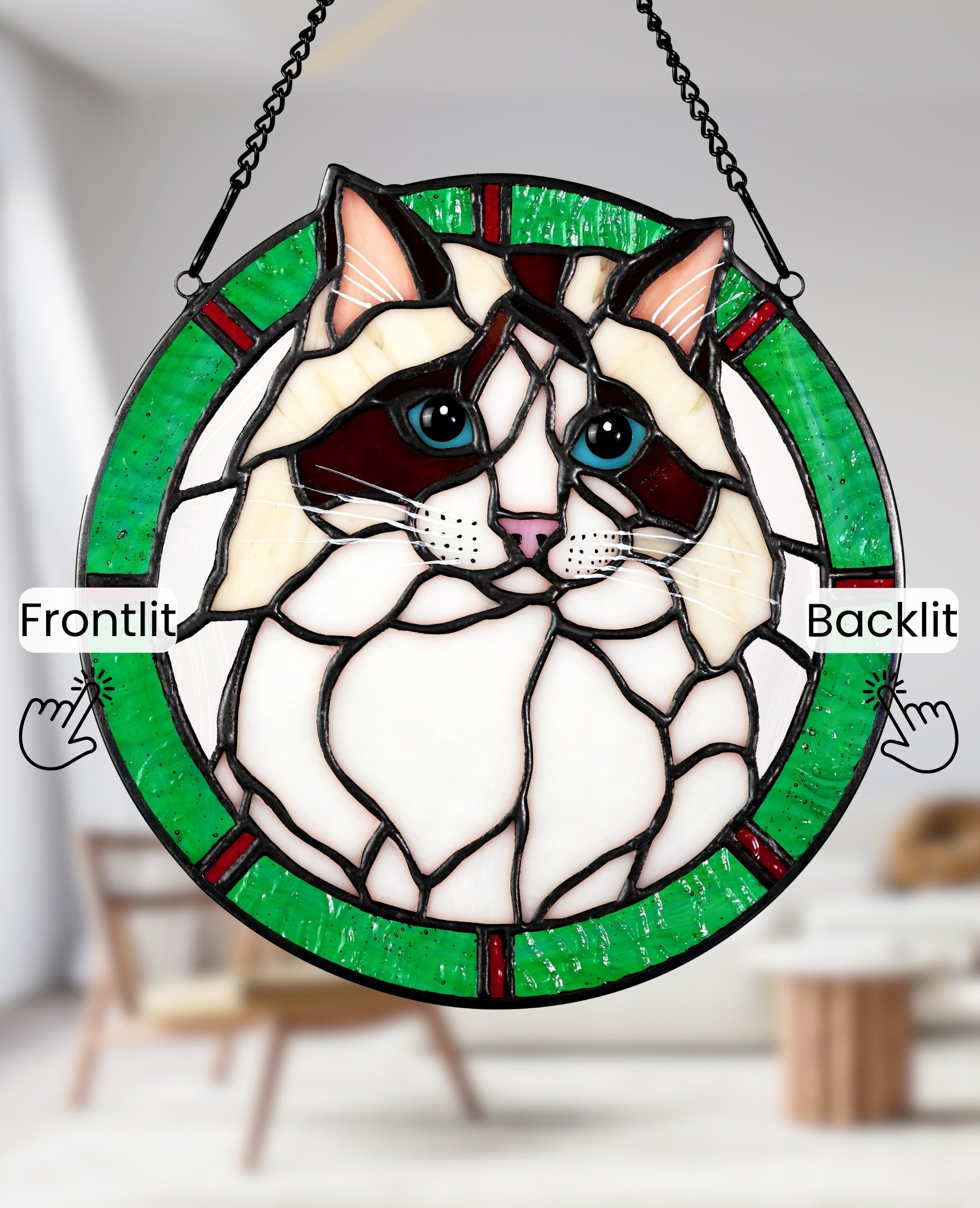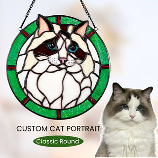 - Cuddle&Shine Custom Stained Glass Pet Portraits Cat - Round Frame