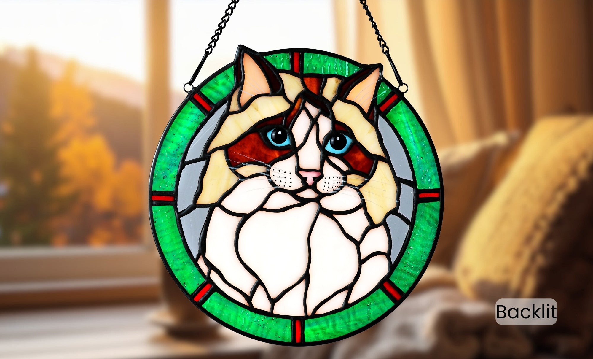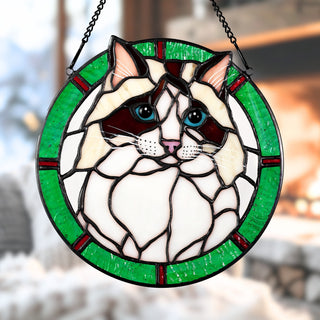 Cuddle&Shine Custom Stained Glass Pet Portraits Cat - Round Frame